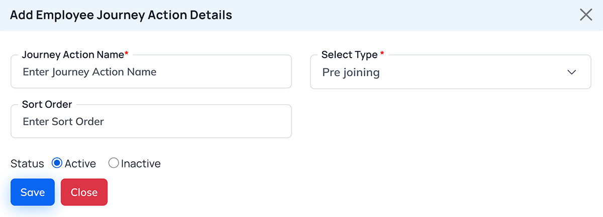 - Add Employee Journey Action: Opens a form to create a new journey action.