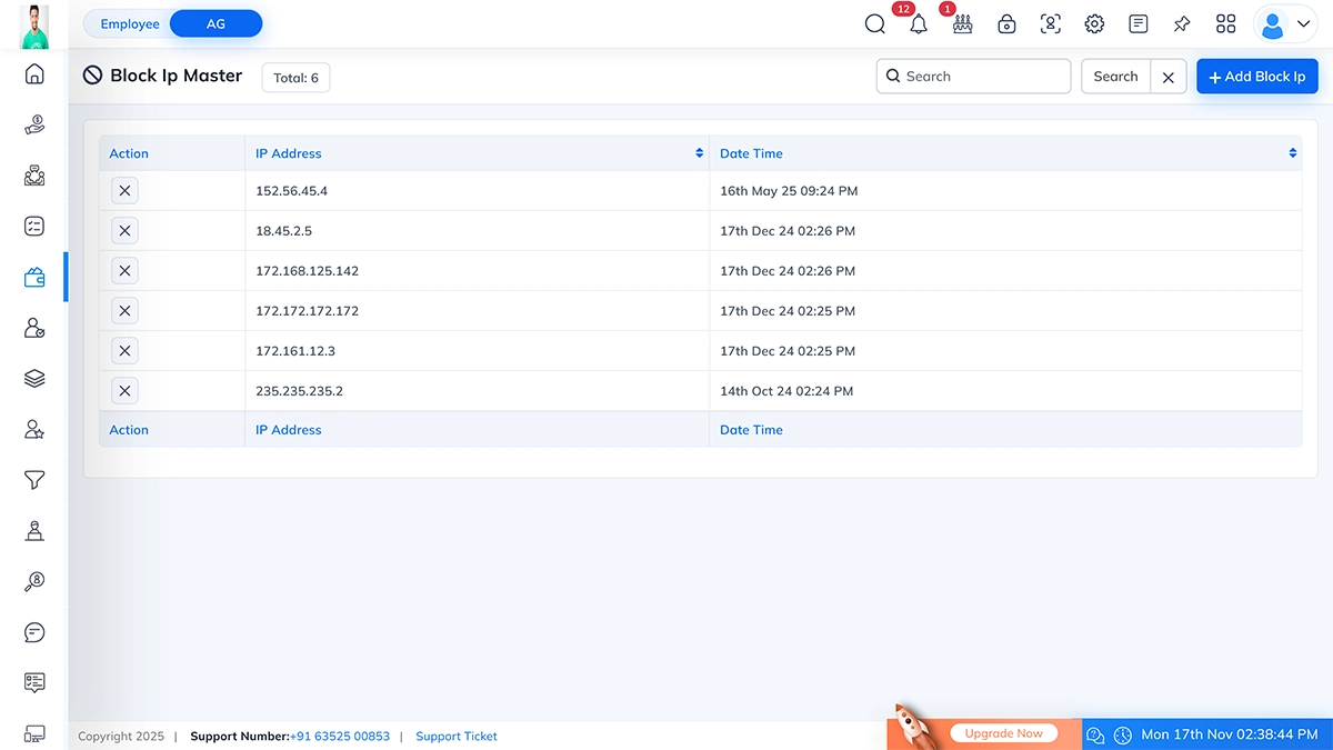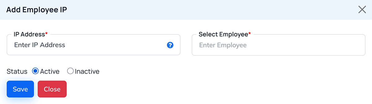 Enter the authorized IP address for the employee (Mandatory field). Example: 152.59.17.119. YOu