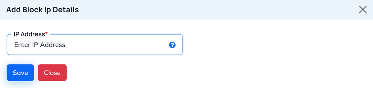 When you click Add Block IP, a popup window appears where you can add a new IP address.