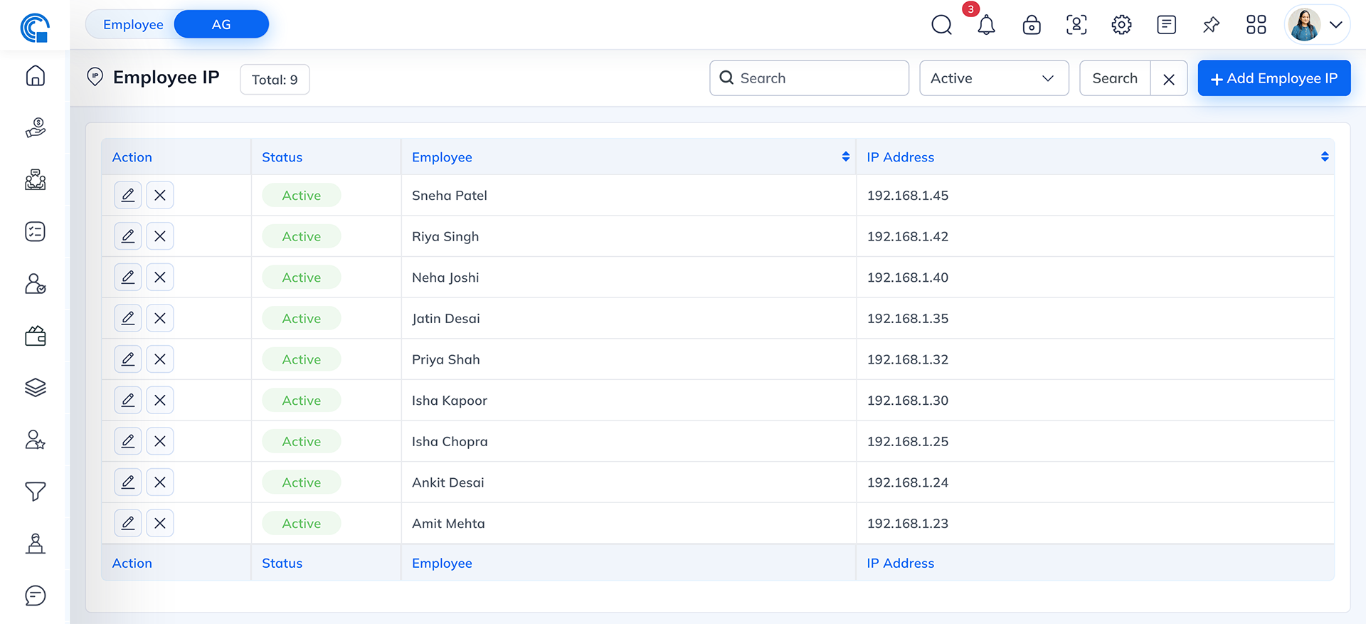 - The system verifies the employee's login attempts against the assigned IP addresses.