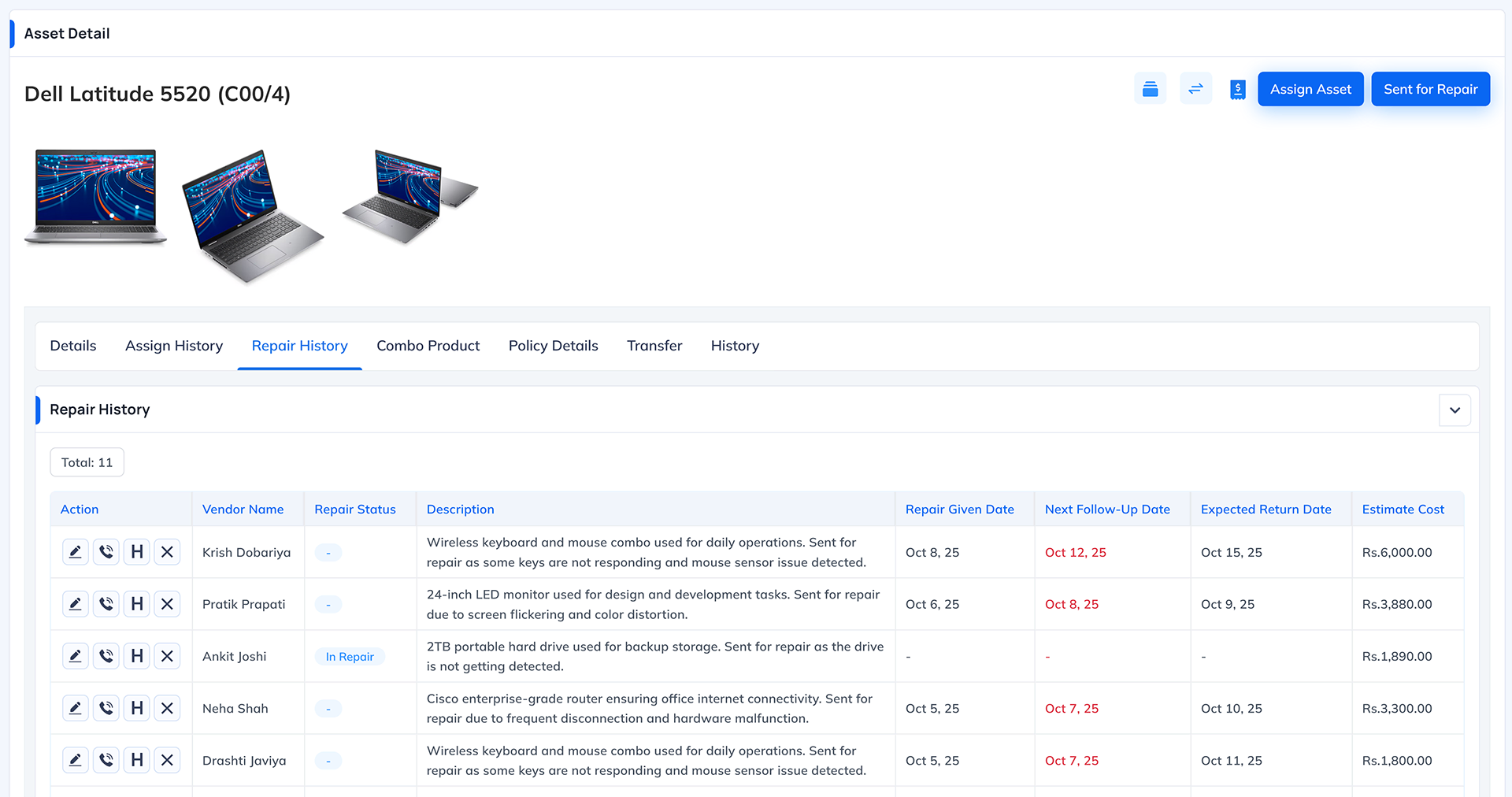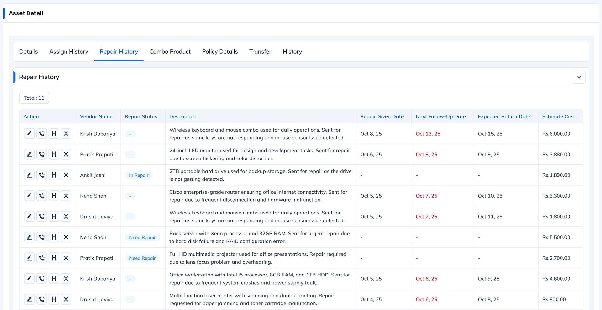 Rising repair bills: Without repair history, the same assets keep draining money with recurring fixes.