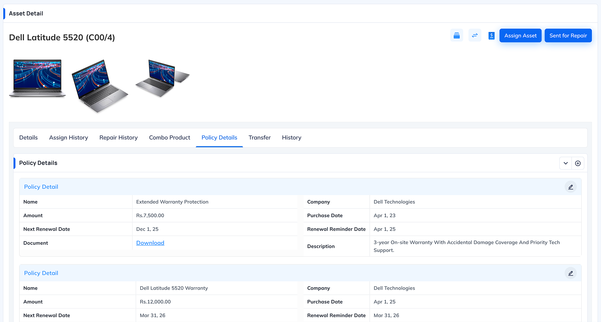 Get reminders before insurance expiry to ensure assets remain covered without lapses.