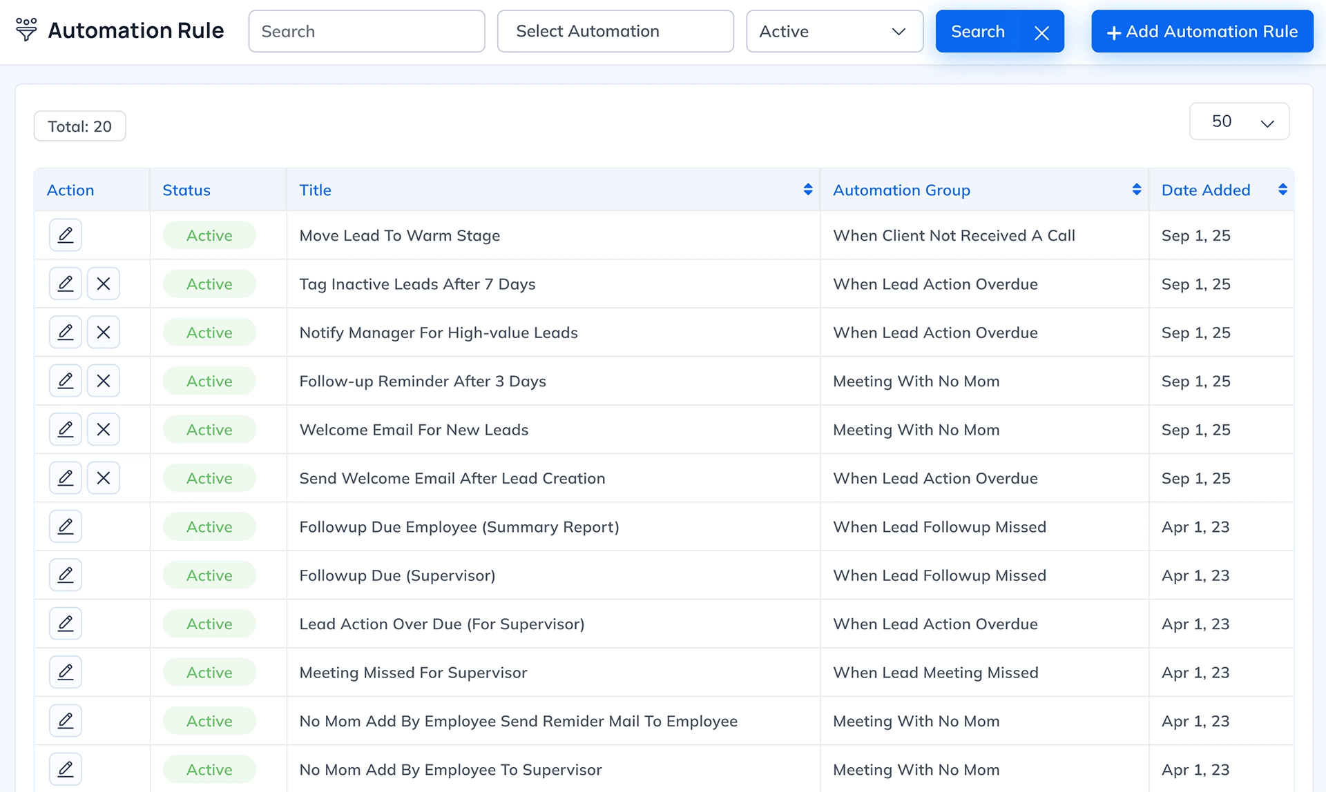 Lead Automation feature is designed to streamline and automate the lead follow-up and communication process. This feature offers rule-based automation for targeted communication, enhancing efficiency and saving time for the sales team.
