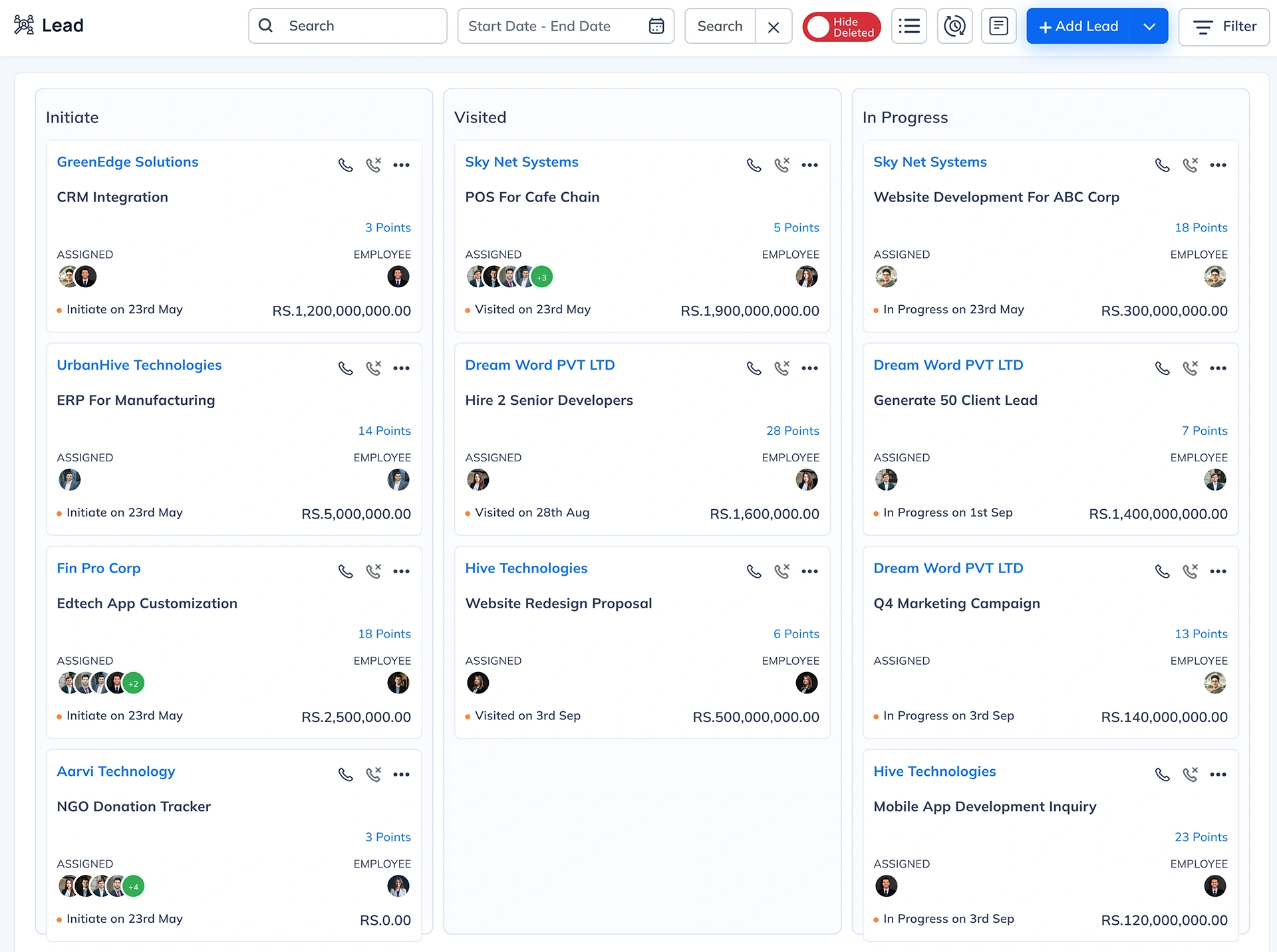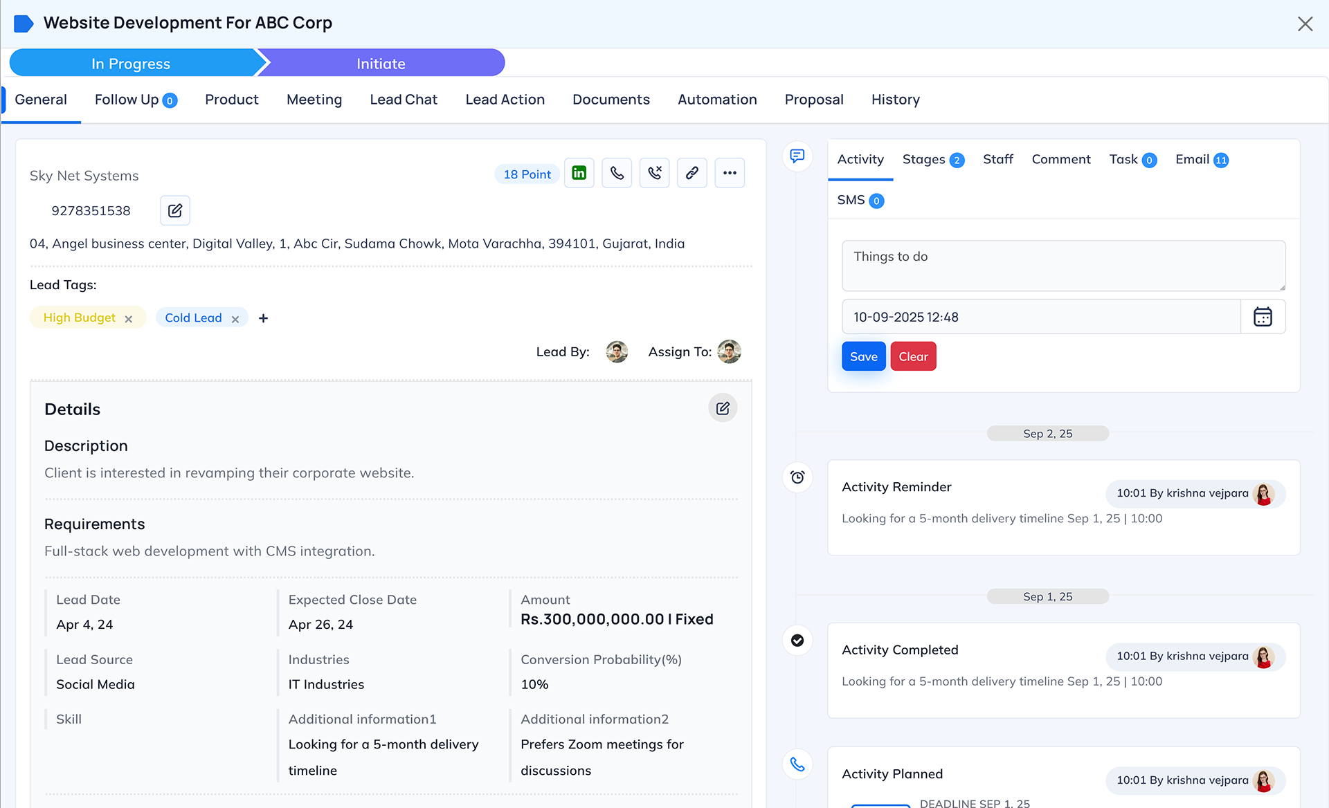 Efficiently manage lead-related activities, keeping track of interactions and tasks.