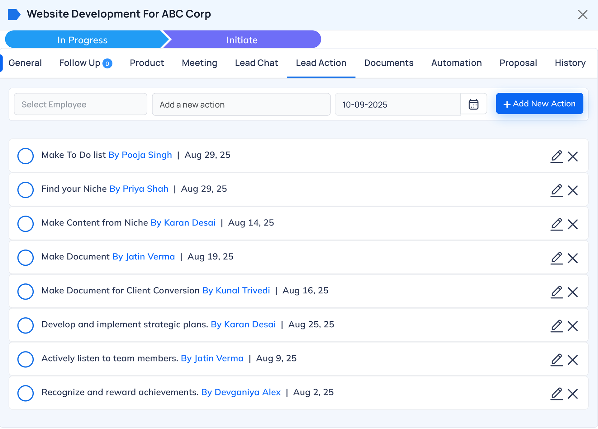 Assign or remove team members to/from specific leads, ensuring the right personnel are involved.