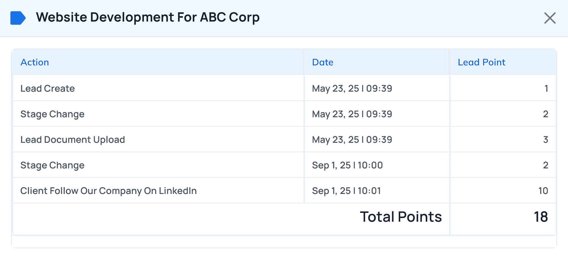 Measure leads based on points earned through specific actions, allowing for prioritization and focus.