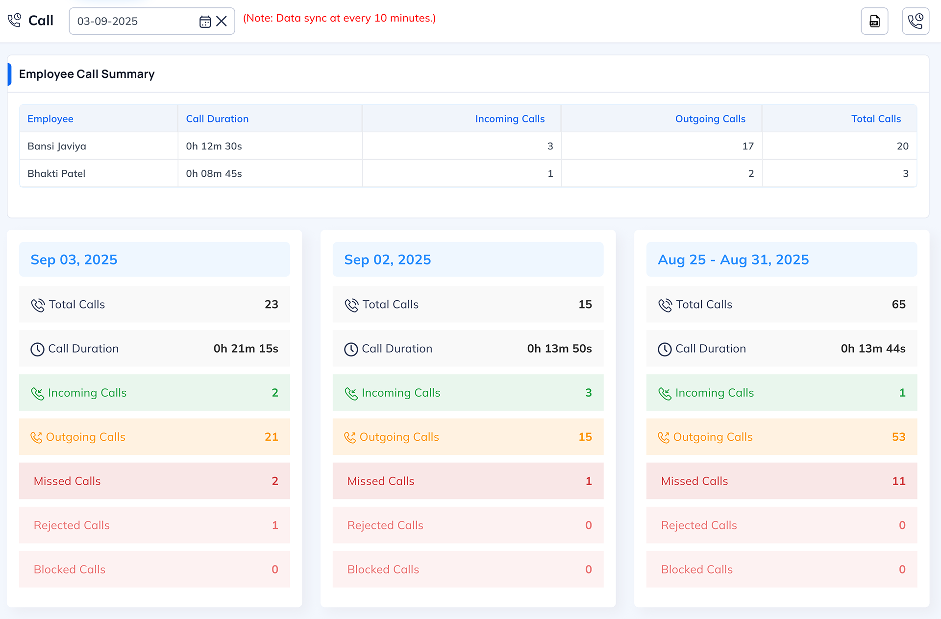 Identify the productivity of telecallers and sales team members through detailed logs.