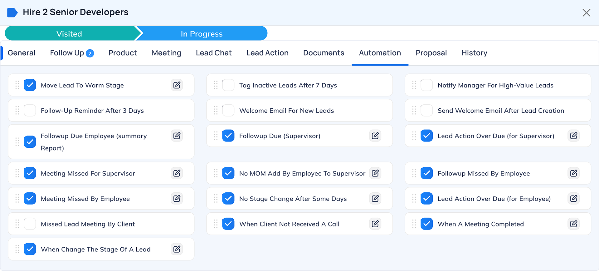 This aspect significantly reduces manual tasks for the sales team, allowing them to concentrate on high-value activities with regular, customizable follow-ups based on predefined intervals or lead actions.