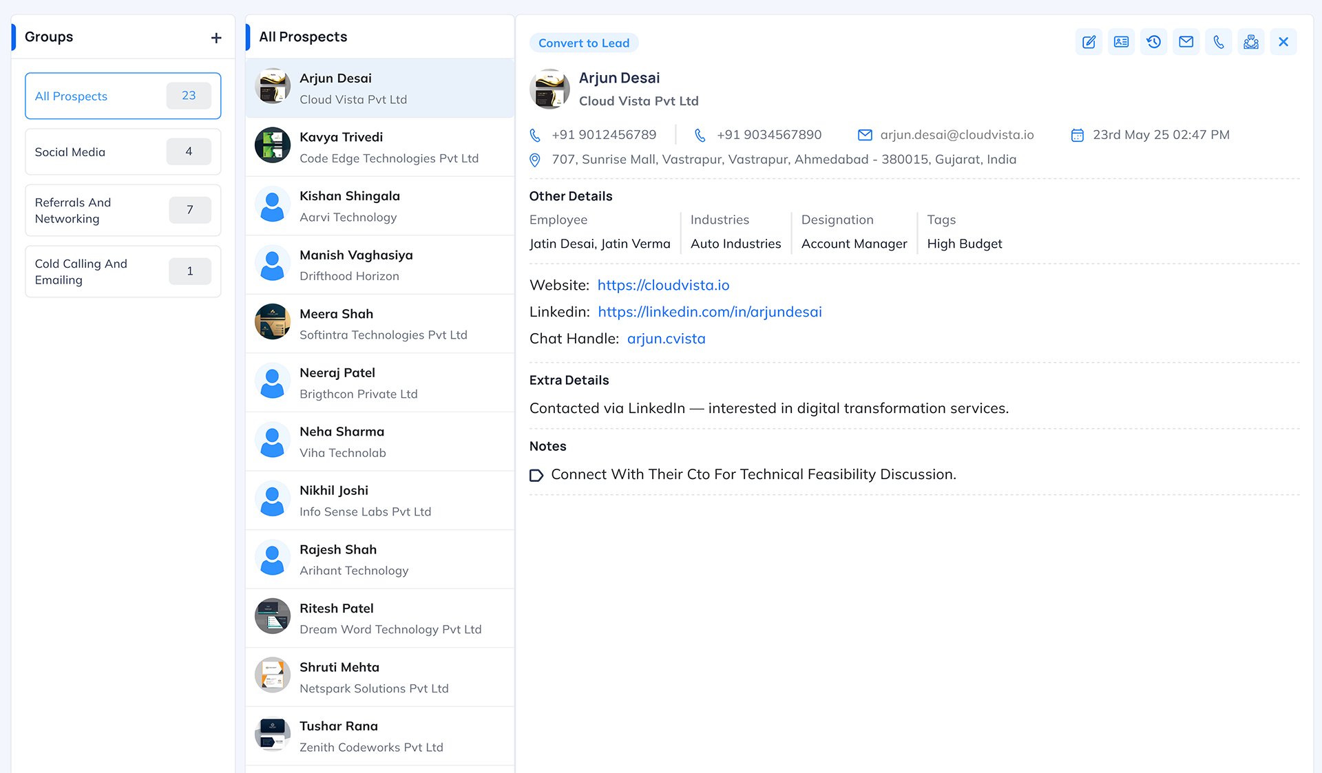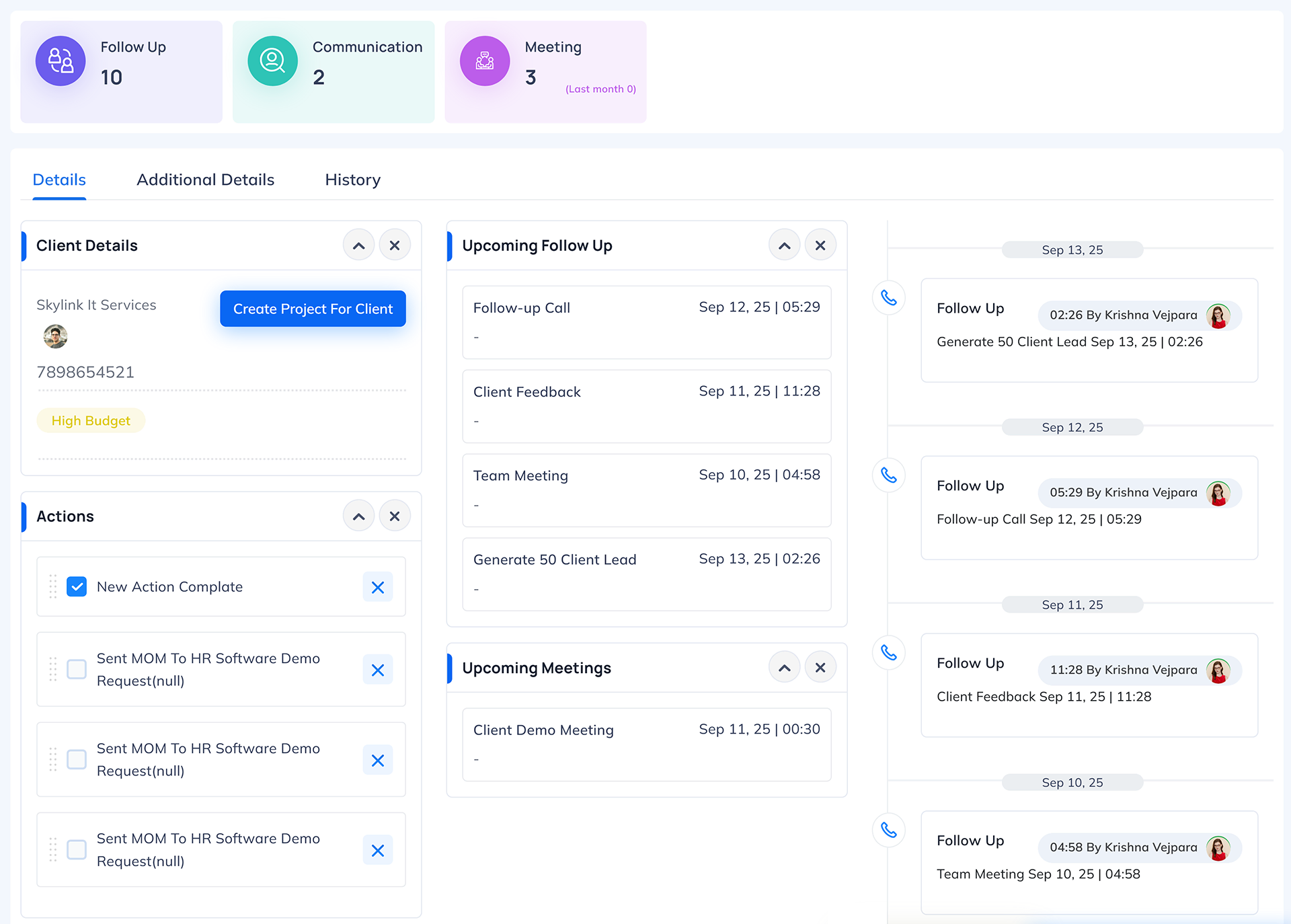 Easily create leads for prospective clients, ensuring all essential details are recorded.