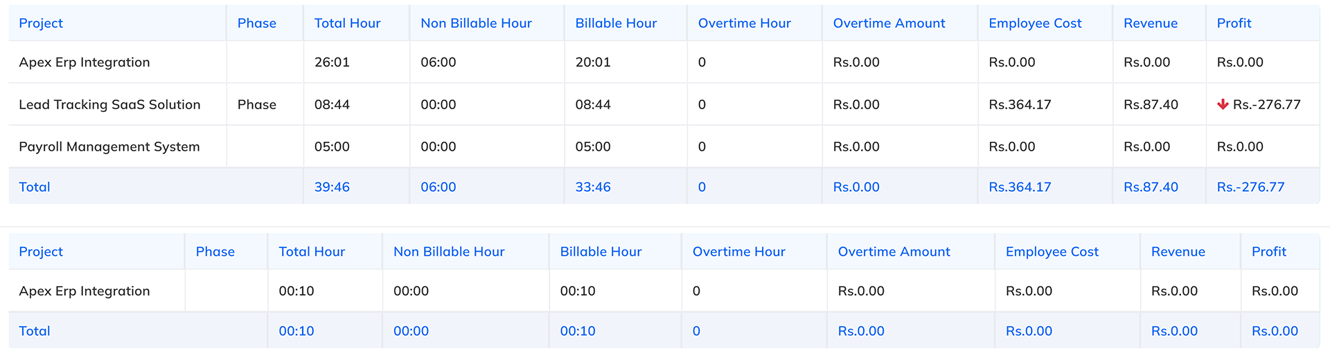 Evaluate team performance based on the completion of tasks and the revenue generated, providing insights into the effectiveness of team efforts on a project.