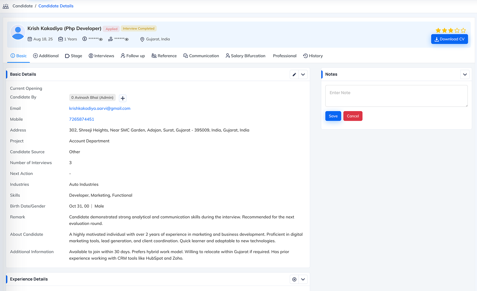 Solves the pain of time-consuming manual data entry by auto-capturing candidate details.