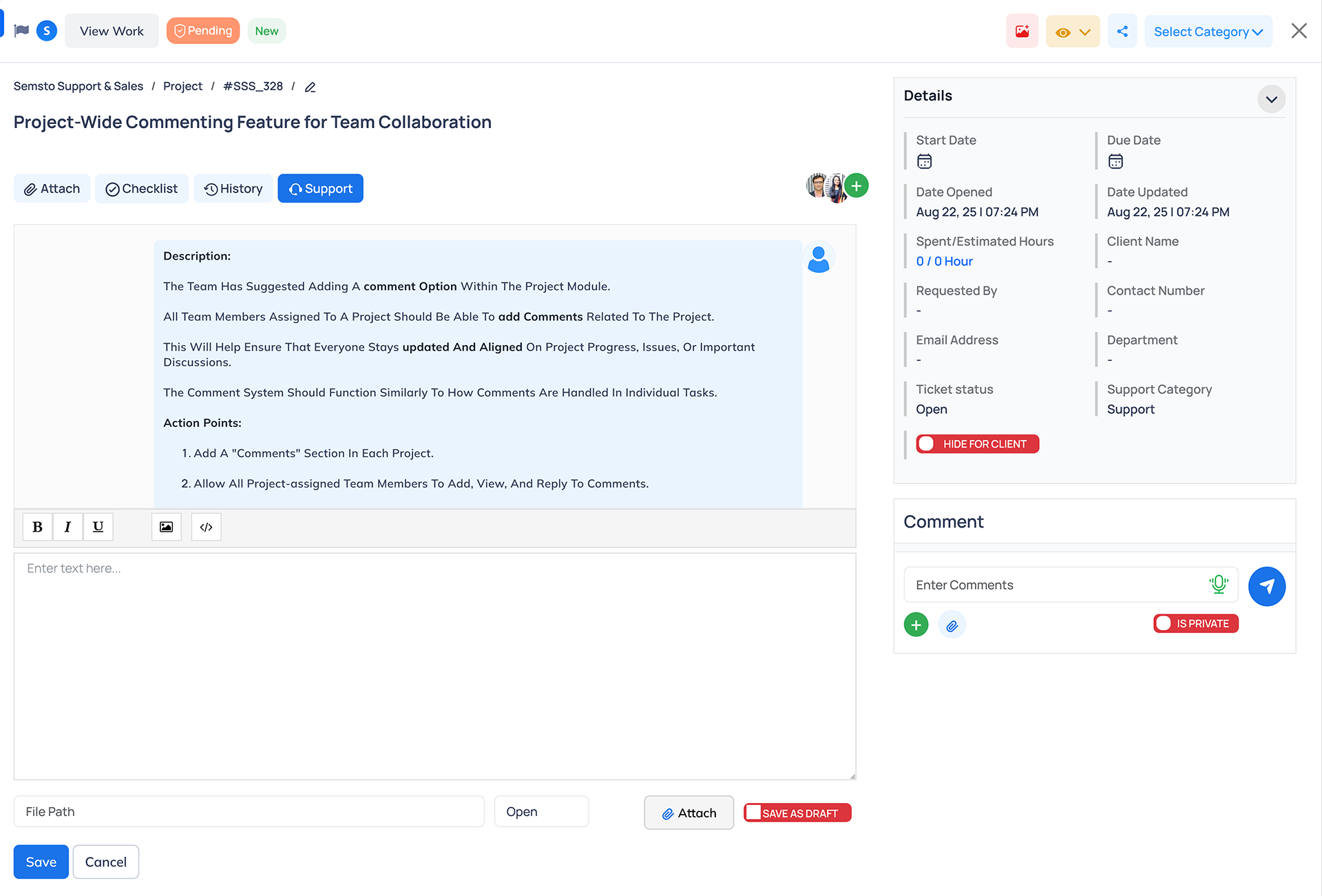 Clear Communication: Keeps both clients and teams aligned with real-time updates, ensuring no request falls through the cracks.